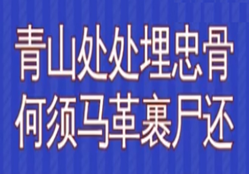 “青山处处埋忠骨,何须马革裹尸还”,意思是“英勇阵亡在外,青山连绵,哪里不是掩埋忠勇之士的好地方,何必一定要运回家乡安葬呢?”。