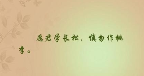 希望能够学习松树的高贵品质和精神风貌,而千万不要象桃李那样,靠着趋附时势而娇艳一时。