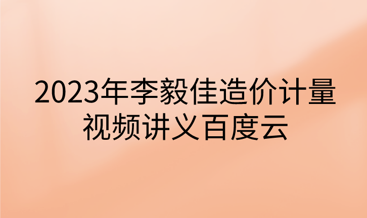 李毅佳2023年一级造价视频讲义下载<<<<点击文字即可下载