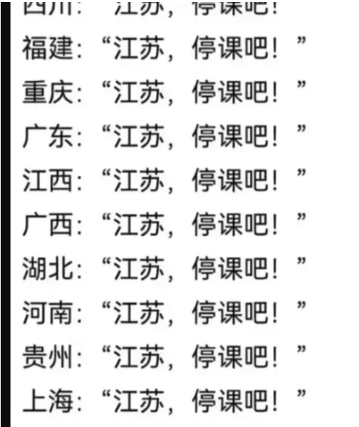 江苏,停课吧!这一句口号原本源于网络上的一种梗,起初似乎毫无道理,但后来逐渐演变成一种幽默的表达方式。尽管其最初的出发点可能是缺乏明确的原因,却在网络社交平台上迅速传播,成为一种调侃的流行语。