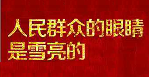 “人民群众的眼睛是雪亮的”,最早出自于毛泽东的文章,其后通过报告、报纸、电视等各种形式传播于民间,并深入人心。意思是“某人做一件事情, 但意见都差不多或者嘲笑某人做错事又不承认。大家都看在眼里,欺瞒不了广大人民群众的。